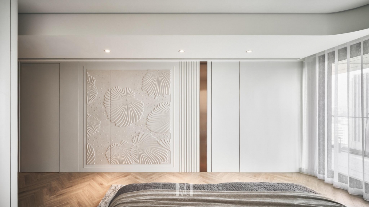 浮雕上以葉片的律動隱喻風的輕語、光的流動,在靜謐中透出一種柔軟的藝術療癒氛圍,述說著「安靜的美」!