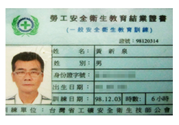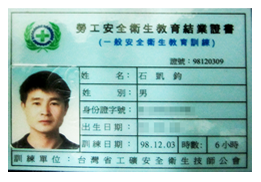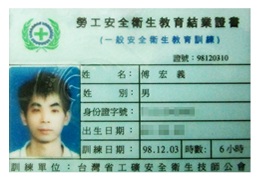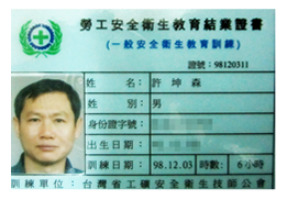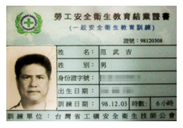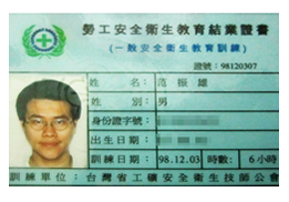 安全衛生教育訓練證書