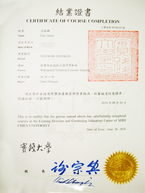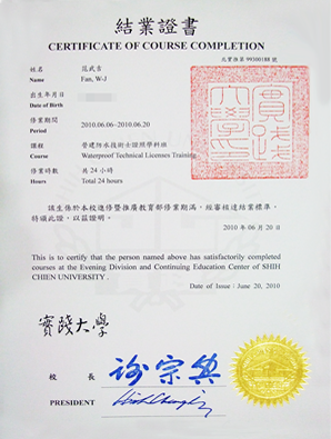 【實踐大學防水結業證書】