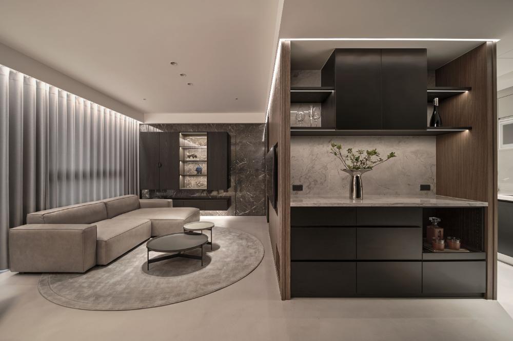 以屋主喜愛的黑灰色調作為空間設計基底,