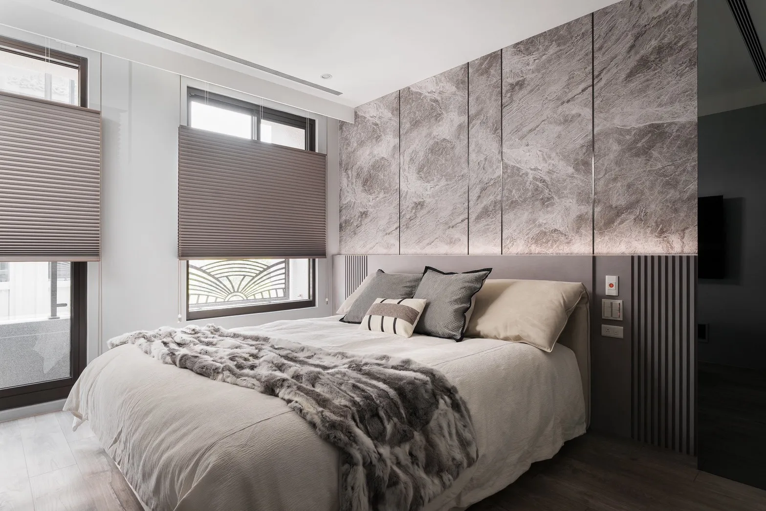 在石紋的肌理與柔和的光影間,藏著安定的力量。